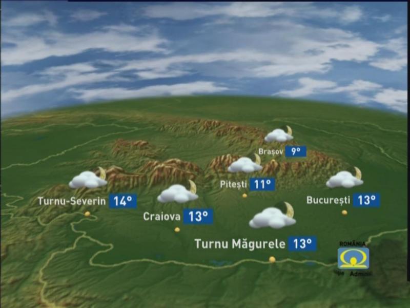 Dupa frigul si ploile zdravene din zilele trecute, vremea se îmbuneaza atat in vest cat si in centrul tarii. Vor mai fi înnorari si ploi locale, dar slabe. Vântul va sufla mai tare pe creste, dar si astrele vor aparea cu mai mult aplomb, prin urmare vremea devine frumoasa usor si aici.